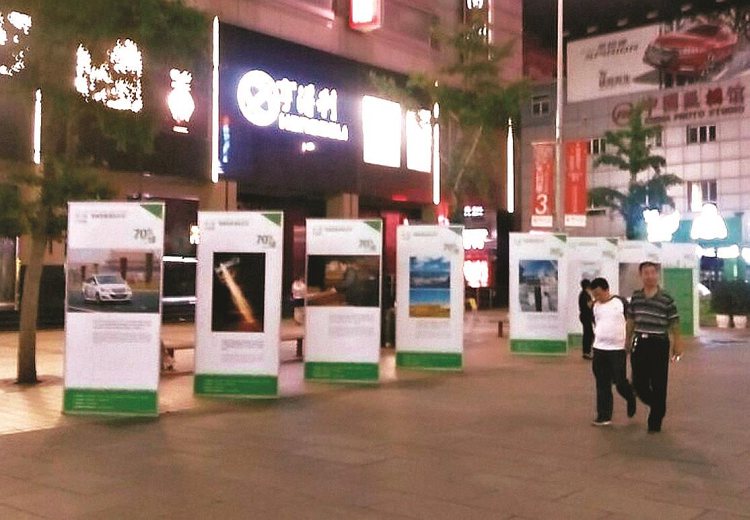 China has put advertisement boards in its cities such as Wangfujing city centre area in downtown. The ads show pictures of pollution in Indian cities like Mumbai and Allahabad and are put up along the streets.