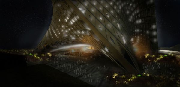An elevator will take you up from the entry door right below the structure, as there is space available due to arched exterior. The art galleries along a continuous perimeter ramp spirals upward. Administrative spaces are placed at the highest level and a children’s museum lies below the grade. Steel elements supports the whole space throughout the structure and the skin wrapped outside the columns makes perfect a double curvature glass facade for water collection, integrate solar panels, and for natural ventilation to reduce energy requirement for artificial lighting. The surrounding area of the building has 750-1250 plantation, mostly trees.